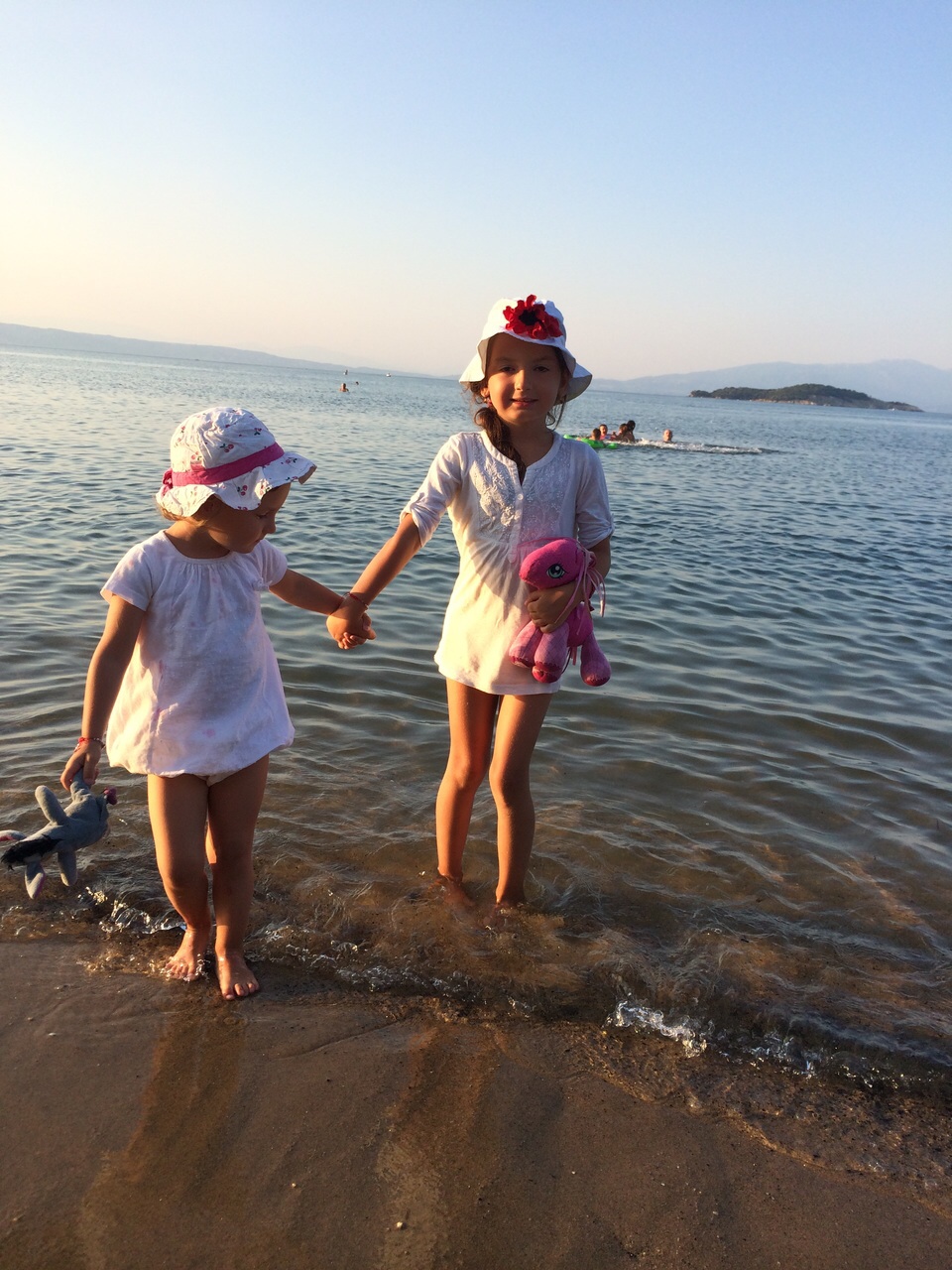 Sofia a reacționat prima – probabil că la 3 ani vocea mamei este un fel de voce a conștiinței – și a fost gata într-un minut. Oricum, sărăcuța de ea, jocul de-a construcția i se păruse plictisitor după ce a cărat vreo 20 de găletușe pline cu apă de mare.