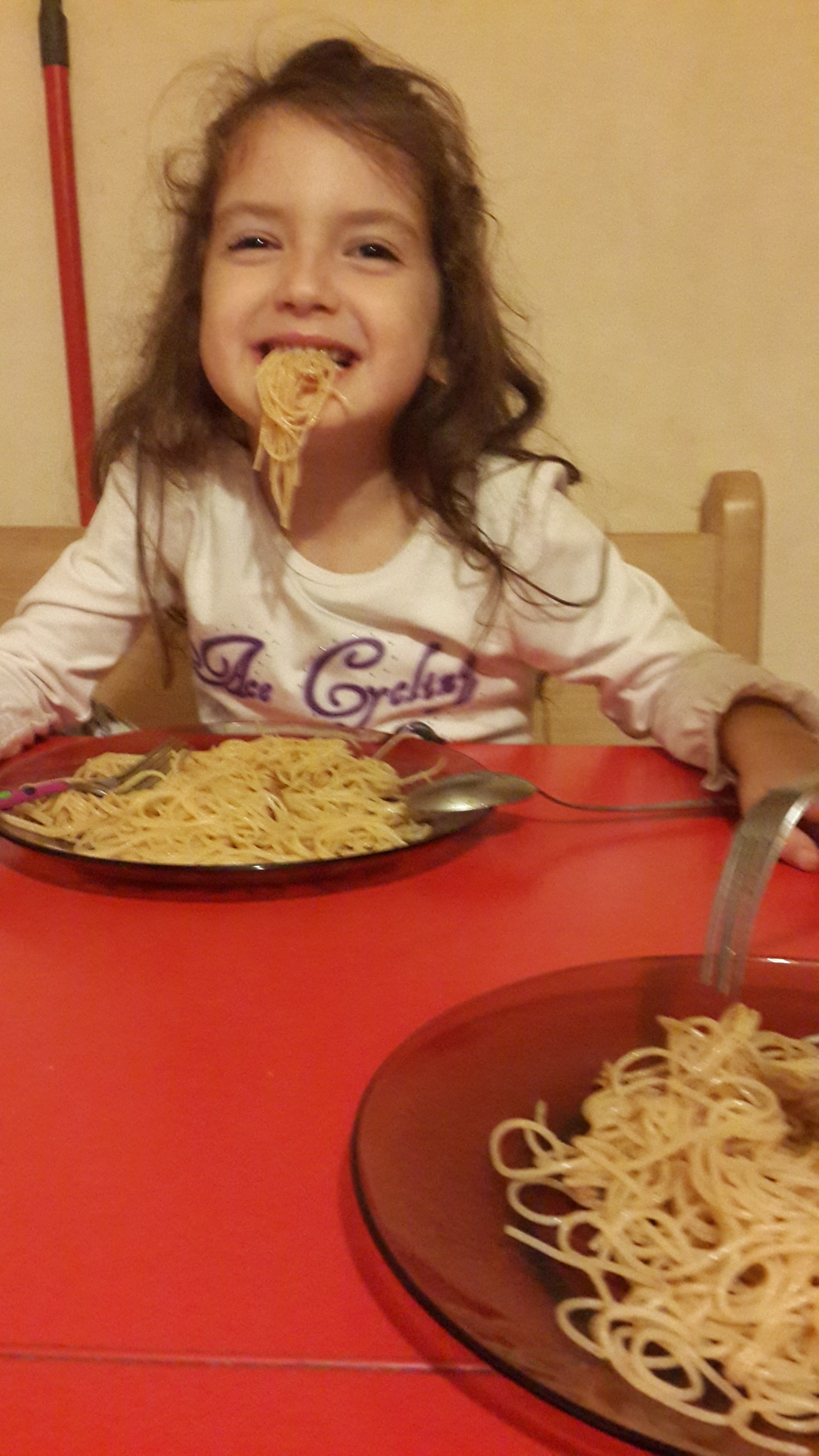 Mâncam macaroane. Cu poftă!